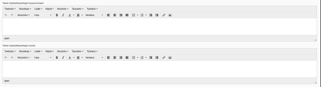 Voit käyttää yllä olevaa kuvaa esimerkkinä. Placeholderit löydät muokkaustyökalun alaosasta. Yksinkertainen kutsu ei kuitenkaan tarvitse kuin esimerkiksi seuraavat: %kutsunotsikko% %kutsuteksti% %kutsuja% %kutsuvayritys% %kutsukoodi%